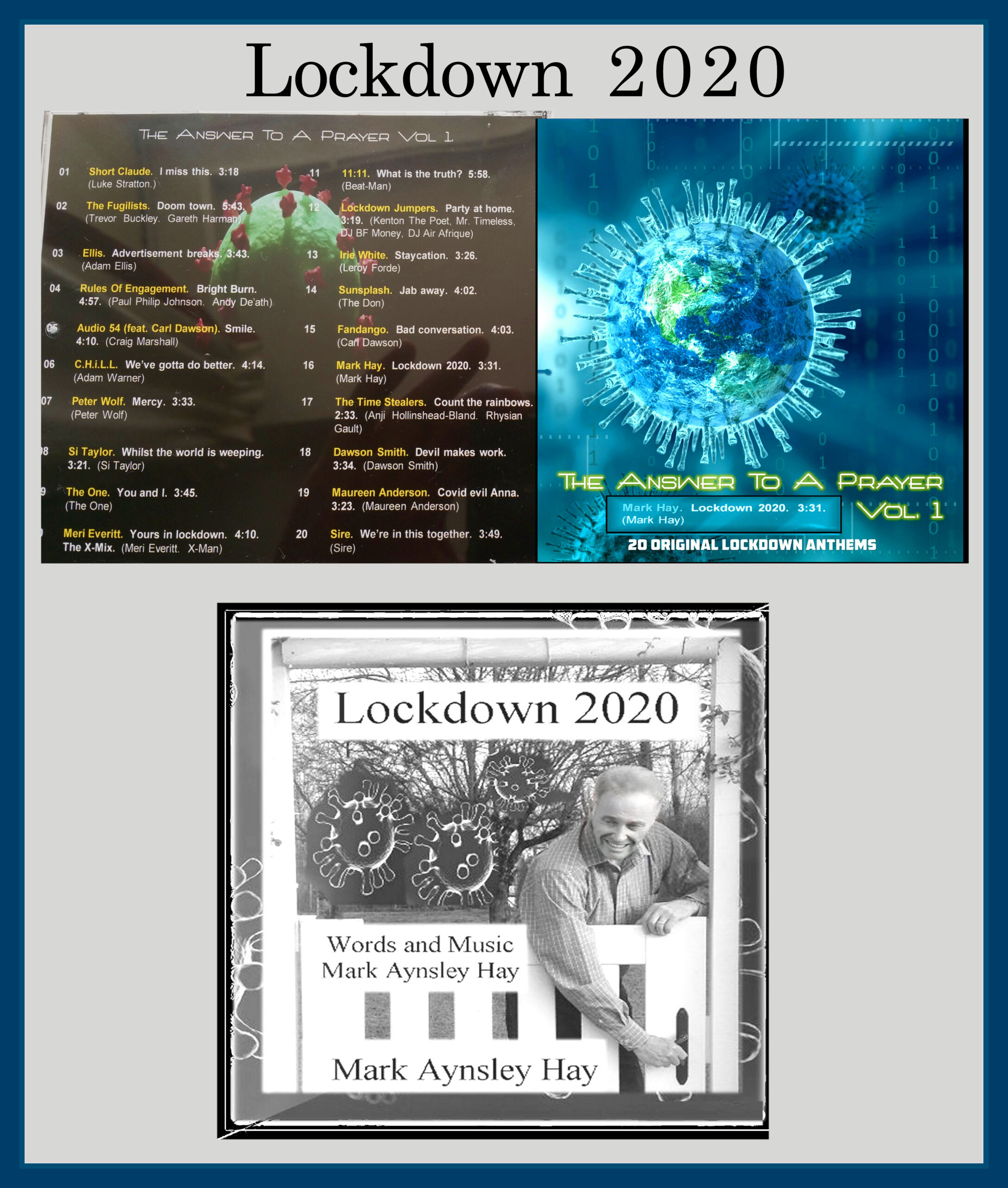 The album consists of a compilation of songs of various genre relating to the Covid pandemic period. It is designed to be a musical historic reference for future generations.The album is called The Answer To A Prayer Vol 1 which can be heard on Spotify by clicking on this text.